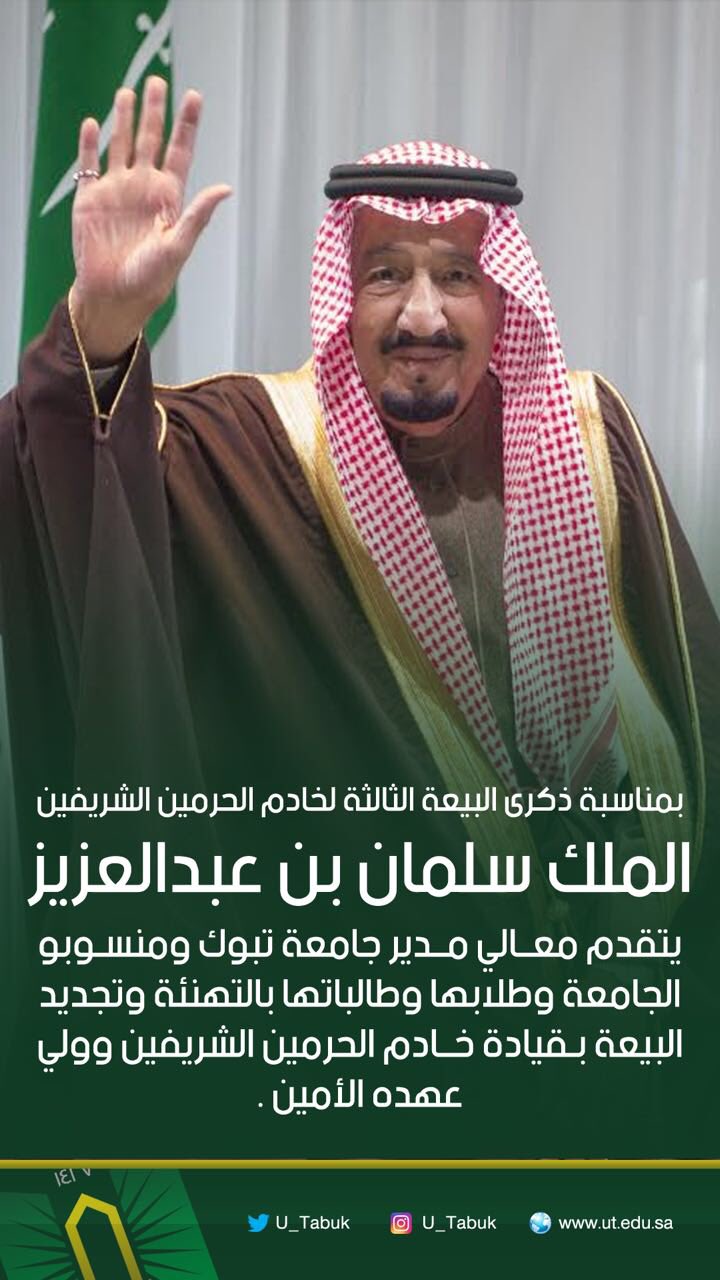 تجديد البيعة لخادم الحرمين الشريفين الملك سلمان بن عبد العزيز تصميم امينة مصادر المتوسطة. نجدد البيعة والولاء لخادم الحرمين الشريفين للملك سلمان بن عبدالعزيز وولي عهده الامير محمد بن سلمان في ذكرى البيعة الخامسة حزم وعزم خير وعطاء بناء ونماء بقيادة حكيمة في وطن مشرق. في ذكرى البيعة لخادم الحرمين الشريفين فكر ونهج خادم الحرمين الشريفين يمكن التعرف على فكر قائد أي أمة وسياسته من خلال متابعة القرارات التي يتخذها في مختلف القضايا وتوقيتها فضلا عن آلية تنفيذها التي يوجه بها القائد.