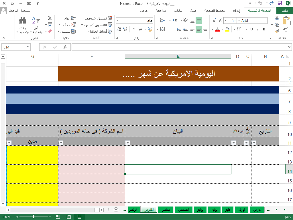 تصميم اليومية الامريكية 2018 بشكل جديد أقل ادخال للبيانات اسهل وابسط شكل لليومية الامريكية تساعدك علي. تعتمد فكره اليوميه الامريكيه علي فكره القيد المزدوج حيث يتم تسجيل كافه العمليات الحسابيه في شكل شيت مبسط لفكره البرامج المحاسبيه حيث ان معظم البرامج المحاسبيه تقوم علي نفس فكره اليوميه الامريكيه تصلح اليوميه الامريكيه لاي شركه او مؤسسه بسيطه لما تتميز به من سهوله تسجيل. اليومية الامريكية معدة لاستخراج ميزان للمراجعة على مستوى شهر فقط وعن الشهرالجديد لابد من معاوده ما تم شرحه سابقة.